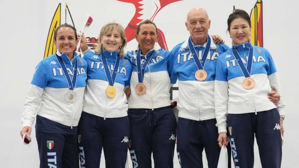 MANAMA – Cala il sipario sul Campionato del Mondo Master di Manama 2025, una rassegna straordinariamente tinta d’azzurro. L’Italia conclude la nove giorni in Bahrein con ben 25 medaglie (nove d’oro, dieci d’argento e sei di bronzo) migliorando il record precedente di Zara 2022 con 17. Nel giovedì che ha chiuso la manifestazione sono arrivate quattro medaglie in altrettante prove a squadre. Trionfo per la formazione di fioretto femminile Veteran e il quintetto della sciabola Grand Veteran. Argento il fioretto femminile Grand Veteran e la sciabola maschile Veteran. Un gran finale sotto gli occhi del presidente della Federazione Italiana Scherma Luigi Mazzone e del Vicepresidente vicario Daniele Garozzo.
