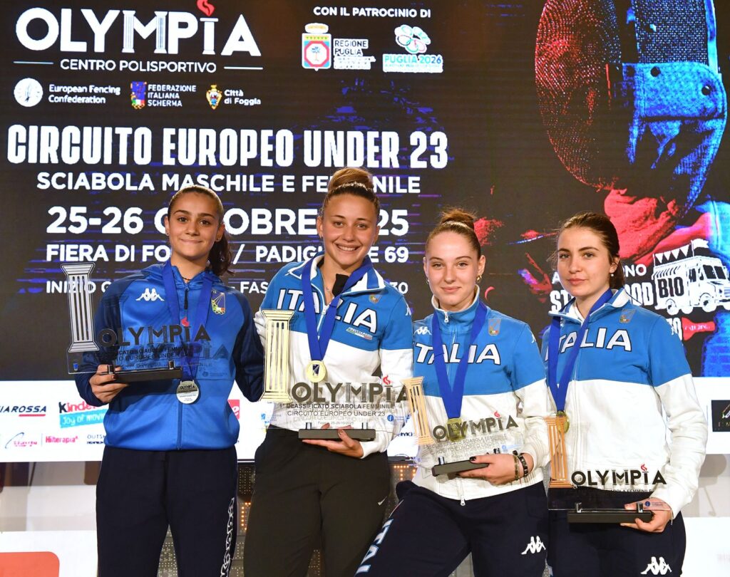 EISLINGEN – Spedizione ricca, da ben cinque medaglie, per l’Italia nel Circuito Europeo Cadetti di sciabola a Eislingen. Nella prova individuale maschile vittoria per Leonardo Reale, che è salito sul primo gradino di un podio che vede anche Davide Vivaldi e Matteo Casavecchia sul terzo gradino dopo una gara di grande livello per gli sciabolatori azzurrini. Nella competizione a squadre medaglia d’argento per Italia-1 (Vittoria Mocci, Diletta Fusetti, Ludovica Carnevale e Francesca Romana Lentini) e bronzo per il team Italia-4 (Sofia Martinelli, Eleonora Colella, Vittoria Fusetti e Matilde Reale). A Cabries, nel fioretto, è invece quarta la squadra femminile Italia-1.