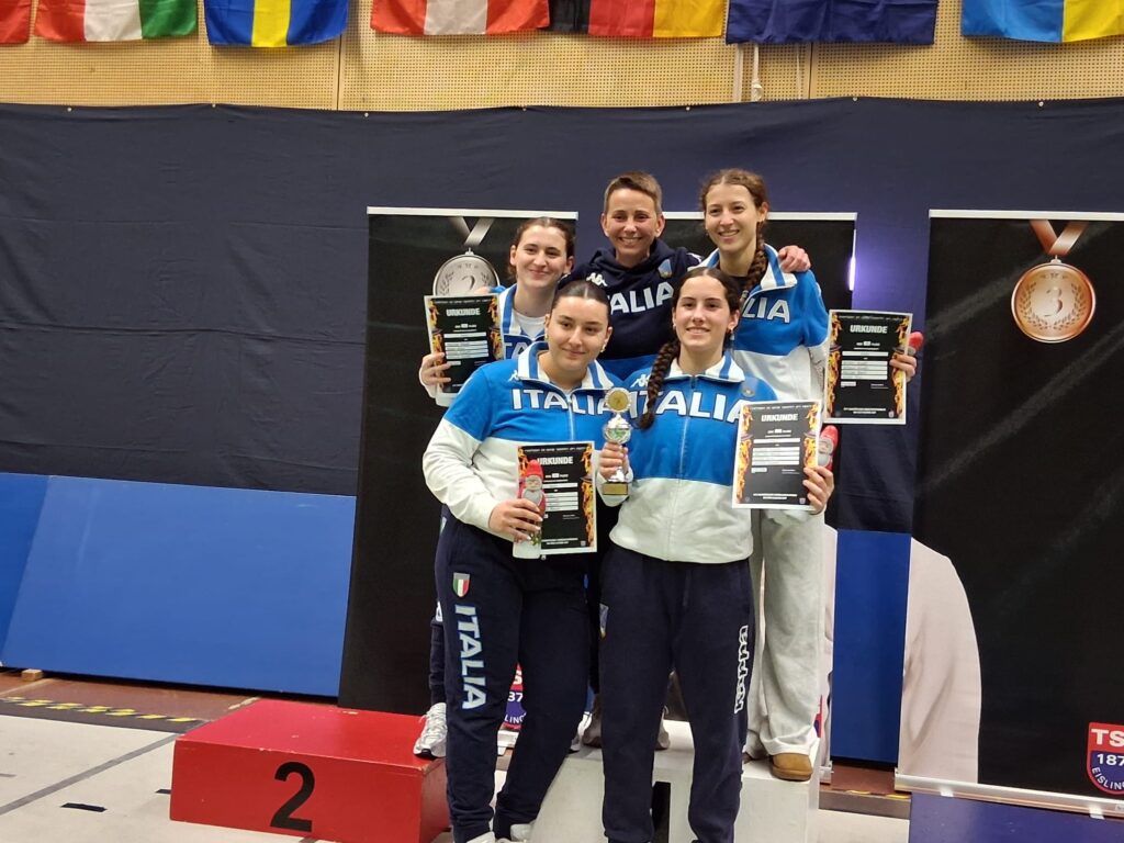 Grande prestazione per gli atleti italiani della sciabola nella prova del Circuito Europeo Under 17 in Germania, a Eislingen. Nella prova a squadre femminile il team Italia1 (Diletta e Vittoria Fusetti, Greta Vinci e Matilde Reale) ha conquistato la vittoria grazie a una prestazione davvero convincente. Medaglia d’argento per Christian Avaltroni nella prova individuale maschile in una gara da 272 sciabolatori.