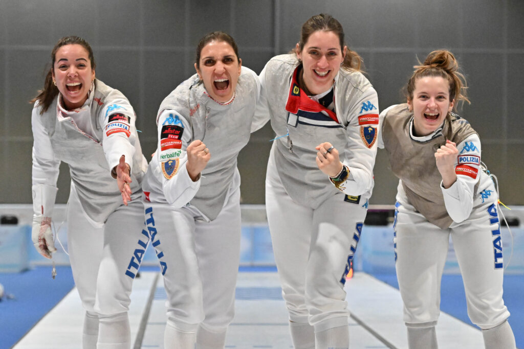 Ammessa per diritto di ranking agli ottavi di finale, l’Italia ha superato nel primo assalto di giornata le russe dell’AIN per 45-23. Nei quarti è stata battaglia fino all’ultima frazione contro l’Ungheria: le azzurre si sono imposte di rimonta, con il risultato di 45-42, e da lì hanno spiccato il volo verso l’oro. In semifinale, infatti, non c’è stato scampo per il Canada, superato con il punteggio di 45-32, e ancor più netta è stata la vittoria nell’ultimo atto contro le francesi (45-22) che ha regalato alle fiorettiste italiane il terzo oro stagionale in tre gare a squadre, dopo quelli di Palma de Maiorca e Busan.