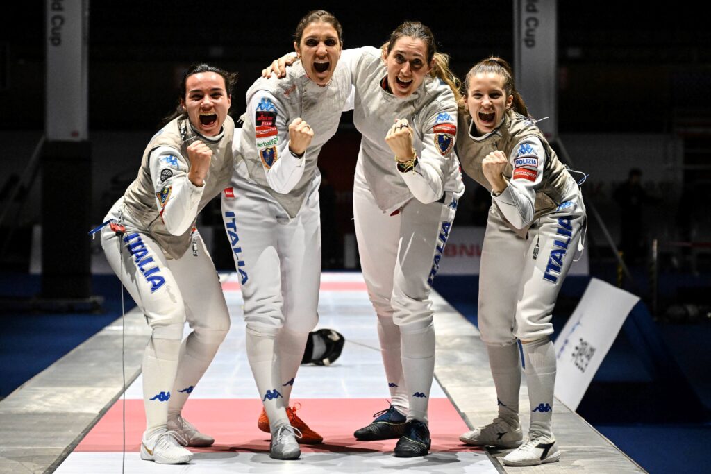 In Corea Arianna Errigo, Martina Favaretto, Anna Cristino e Martina Batini vincono in finale sugli Stati Uniti (45-38) dopo una gara dominata, e in Giappone il team dei ragazzi fa lo stesso superando nell’assalto decisivo la Francia all’ultima stoccata (44-43) e svettando sul gradino più alto del podio con le firme di Filippo Macchi, Tommaso Marini, Alessio Foconi e Davide Filippi.