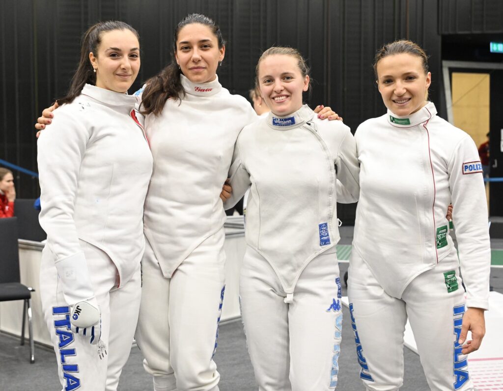 Nella spada femminile, invece, ha chiuso al 5° posto il team delle Fiamme Oro composto da Alice Clerici, Eleonora De Marchi, Lucrezia Paulis e Gaia Traditi, mentre si è classificata 17^ la Methodos Sant’Agata Li Battiati schierata con Agata Alberta Grasso, Beatrice Luca e Sara Saladdino. La prova delle spadiste è stata vinta dalle ucraine del Lviv Academy of Fencing.