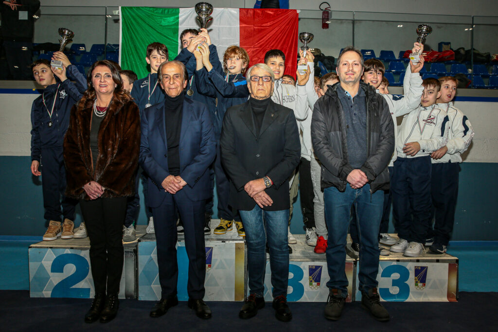 Gradino più alto del podio, tra gli Under 12, per la Schermabrescia. Il terzetto composto da Giorgio Agostino Almici, Leonardo Bianchetti e Gabriel Nathan Schiantarelli ha avuto la meglio nel derby di finale, con il punteggio di 36-25, sulla Libertas Salò Brescia (Umberto Aime, Simone Fiocca e Alessandro Molteni), seconda classificata. Terzo gradino del podio per il Frascati Scherma (Malk El Rhrair, Mattia Giovannetti, Riccardo Proietti e Tiziano Virgili) e per il Circolo Scherma Aretino (Costantino Marmorini, Niccolò Muratori, Iacopo Scatragli e Davide Toscanini).