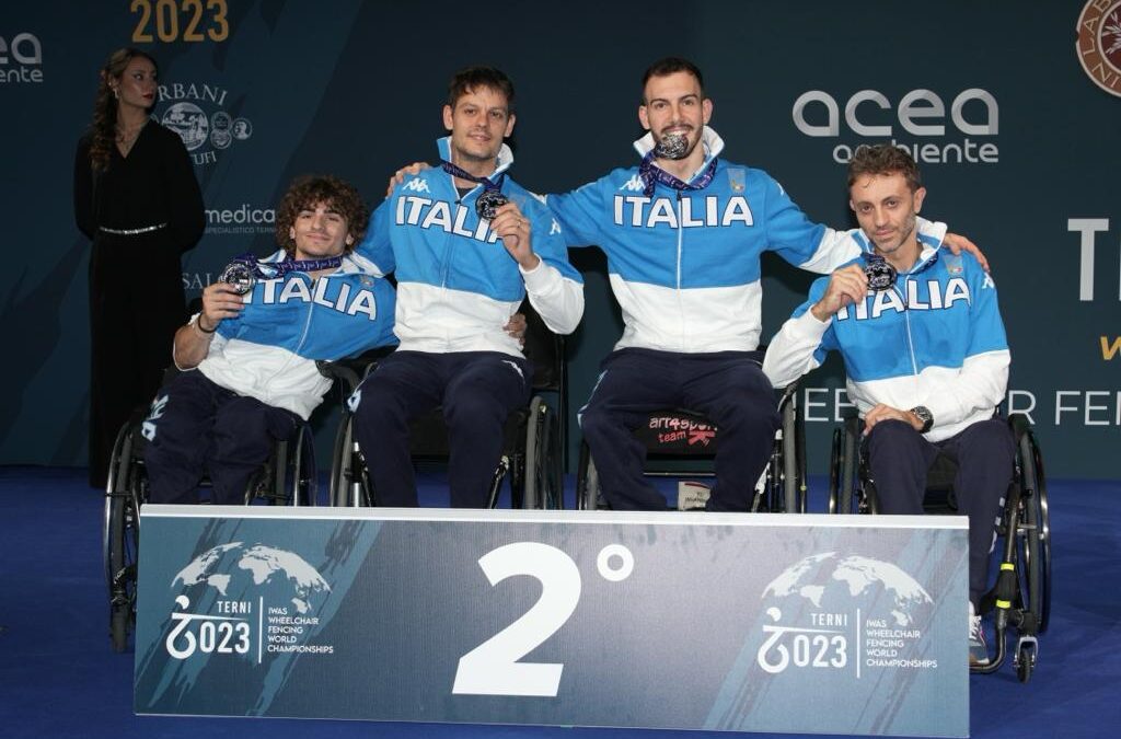 TERNI – La seconda giornata di gare a Terni per i Campionati del Mondo di scherma paralimpica regala all’Italia la sesta medaglia. Dopo il martedì da sogno per gli azzurri, con ben cinque podi di cui due titoli iridati (QUI IL RESOCONTO), oggi brilla d’argento la squadra di fioretto maschile, che conquista così il secondo gradino del podio al termine di una gara da applausi.