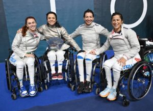 Il quartetto composto dal Campione del Mondo Emanuele Lambertini, il bronzo Matteo Betti, Michele Massa e Marco Cima, da testa di serie numero 2 del tabellone, ha superato d’autorità gli Stati Uniti nei quarti di finale, con il punteggio di 45-17, in un match condotto dall’alba al tramonto senza alcun intoppo. La formazione italiana guidata dal CT Simone Vanni ha continuato il proprio esaltante percorso con una semifinale perfetta contro la Francia, vinta per 45-28. Il netto successo sui transalpini, ha così aperto agli azzurri le porte dell’ultimo atto contro la Cina. Nel match valido per l’oro i fiorettisti italiani hanno lottato e combattuto fino alla fine ma si sono dovuti arrendere agli asiatici con il 45-33 finale. Una sconfitta che però consegna all’Italia un argento di grandissimo valore anche in vista delle Paralimpiadi di Parigi 2024.
