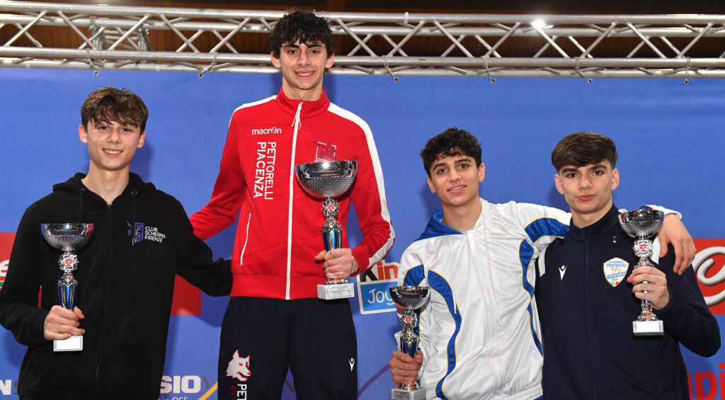 Ai piedi del podio, tra i migliori otto, si sono piazzati Pietro De Gaetano (Roma Fencing), Valentino Monaco (Pettorelli Piacenza), Edoardo Trabucco (Circolo Scherma Castelfranco Veneto) e Carlo Leone Meliga (Ginnastica Victoria).